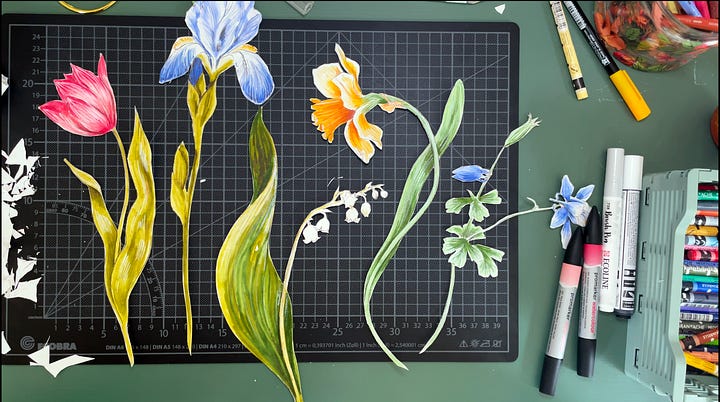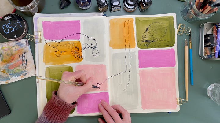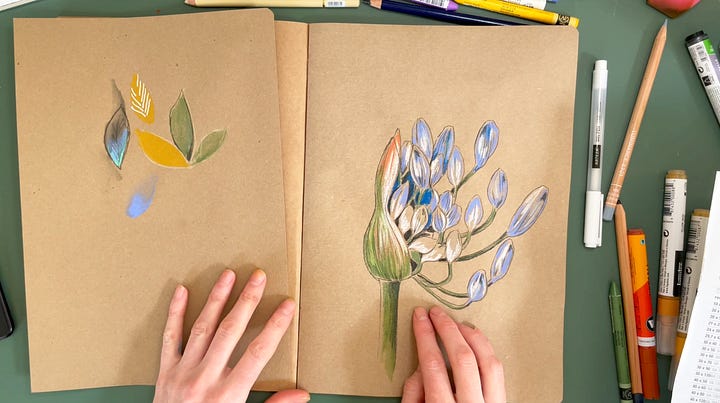 Nothing is more difficult than finding joy in drawing and painting when you feel blocked and uninspired. I found the answer in an unexpected place. While thinking of a more interesting way to showcase materials for my paid posts, I suddenly realized that my studio is full of forgotten materials: pencils I've put aside, paints I've had for years due to being busy with other materials, and pastels I avoided because I didn't want to get my hands dirty.