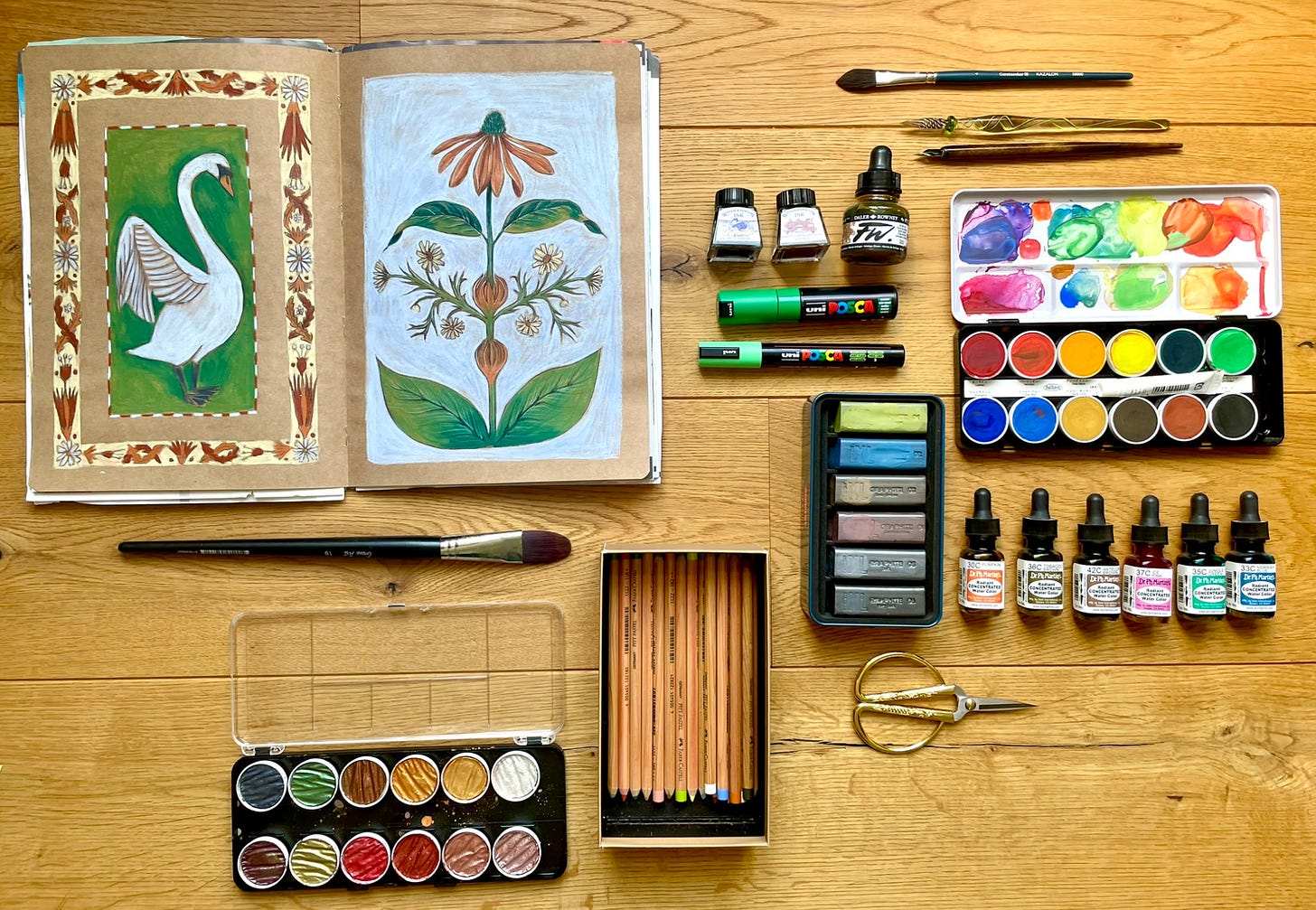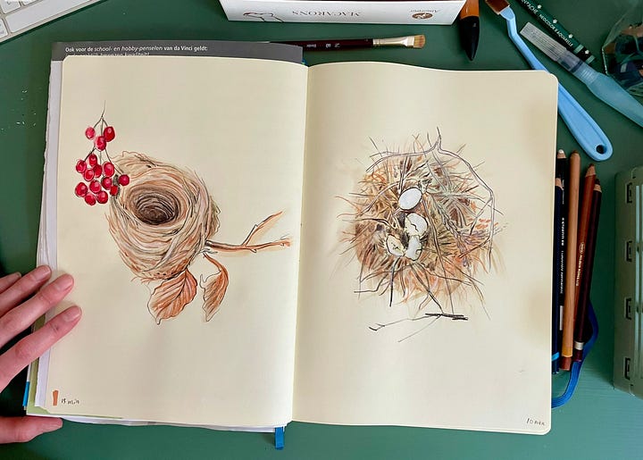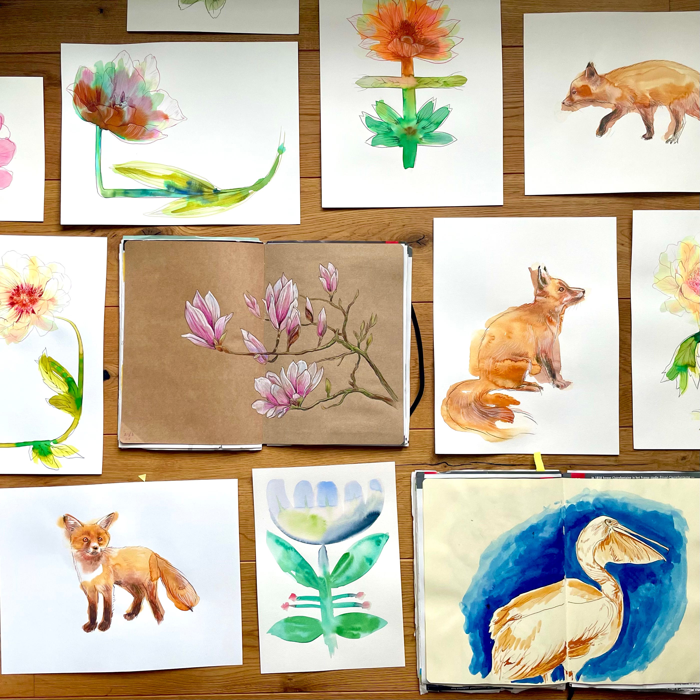 My top favourites are the kraft-paper sketchbook (see the Youtube Sketchbook tour below) and the watercolours. The watercolours inspired me to work more freely and experiment on larger paper, resulting in refreshing new artwork. This has led me to work more on coloured paper and I now find working with lots of water and ink/watercolours a very meditative activity. AND I avoid wasting materials, AND I don't have to buy anything new. WIN-WIN-WIN 🥳